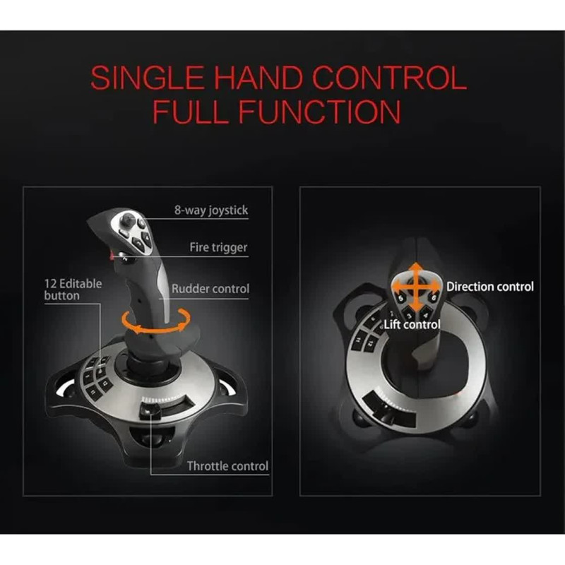 این جوی استیک مجهز به قابلیت لرزش (Vibration Function) بوده که بازخوردی طبیعیتر از شرایط پرواز، مانورها و تکانهای محیطی ارائه میدهد و هیجان بازی را افزایش میدهد. همچنین وجود اهرم کنترل گاز (Throttle Control) امکان مدیریت دقیق سرعت و توان موتور را فراهم کرده و کنترل کاملتری در شبیهسازی پرواز در اختیار کاربر قرار میدهد.